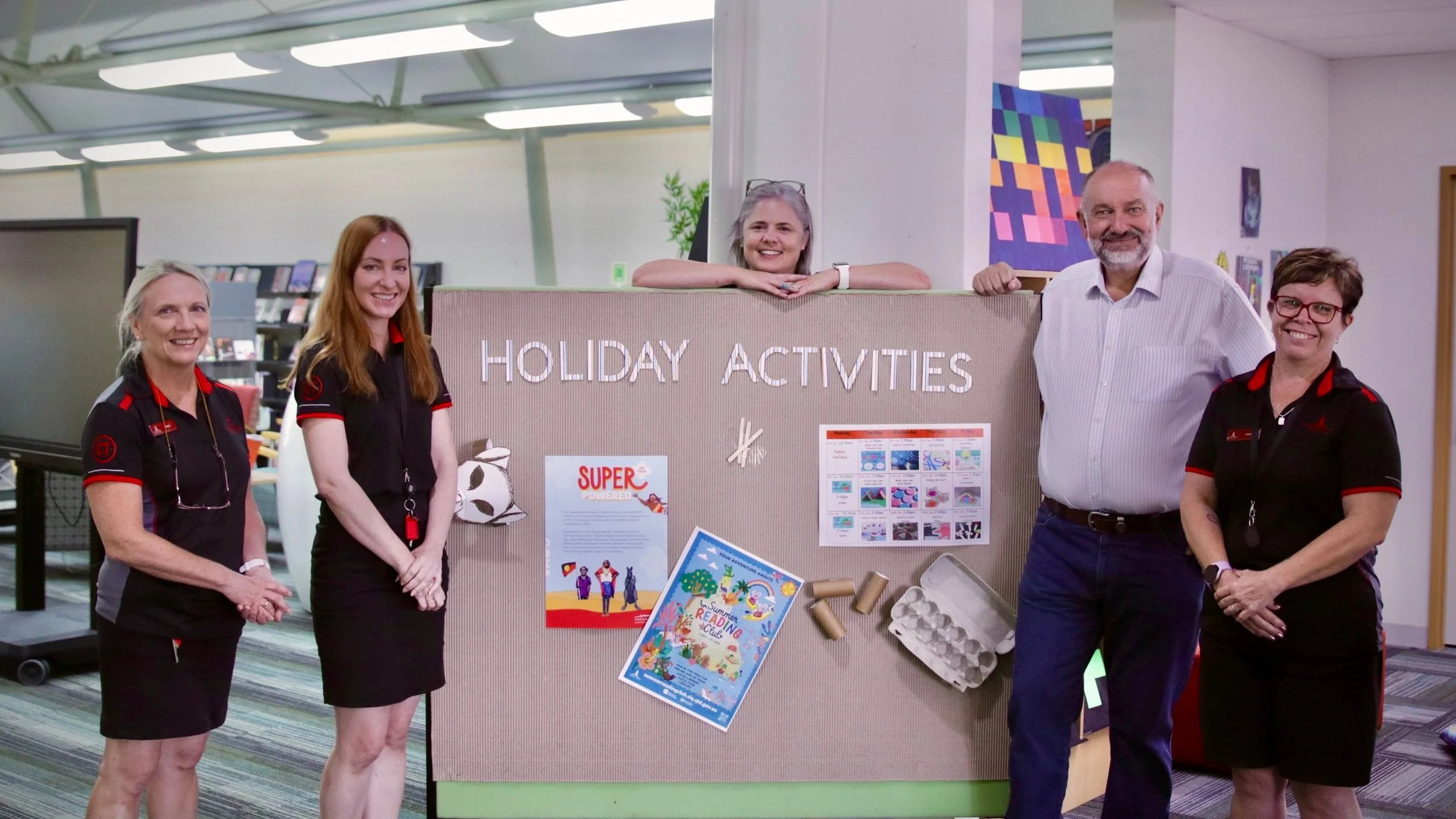 Penny Phillott, Jody Read, Amanda Marten, Deputy Mayor Graham Lohmann, and Anne Tweedie at the Charters Towers Excelsior Library