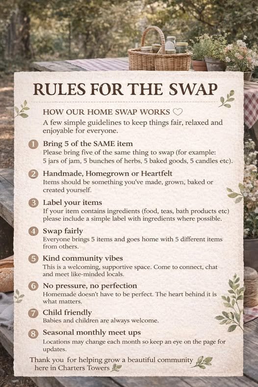 “When I came across a few pages hosting similar swaps in other towns, I thought it was such a beautiful idea — so I decided to bring it to our community and start the Charters Towers Homemakers Swap.”